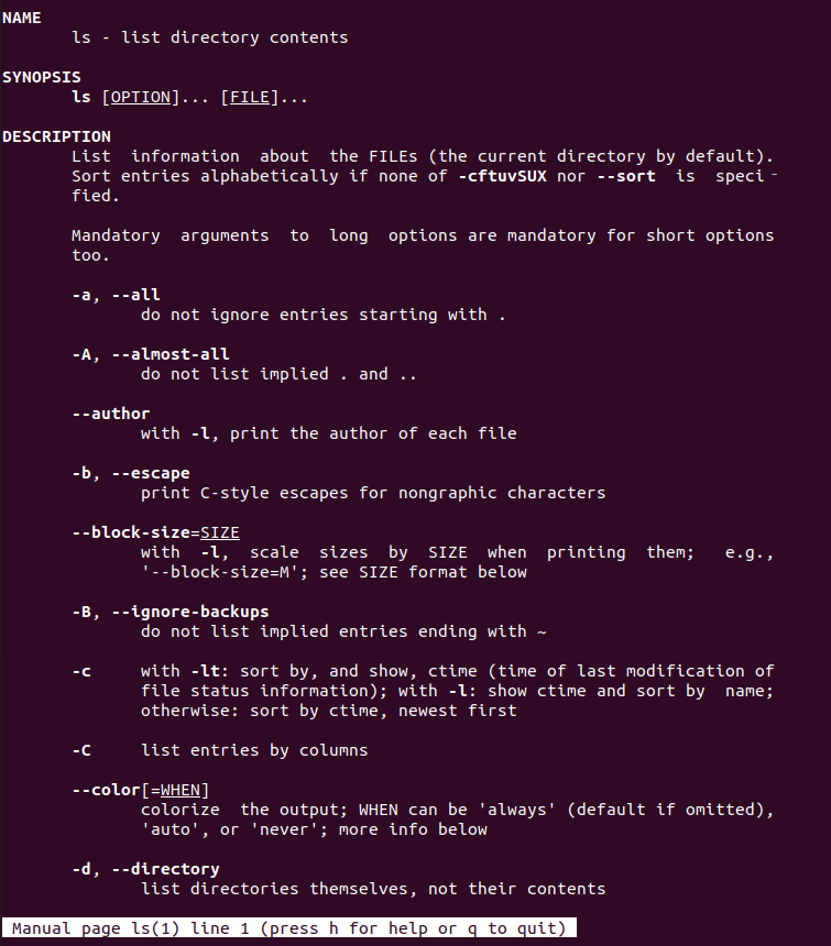실제로 ls 명령에 대한 manual page를 살펴보면 아래와 같다.